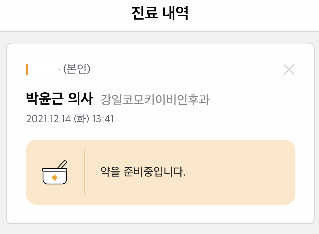 첫 화면에 가면 진료볼 과를 정하는데, 나는 감기를 눌러 이비인후과 진료를 보았다.